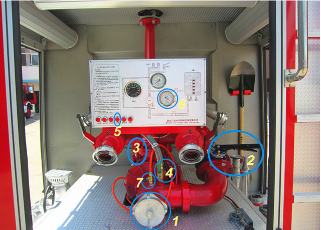 打開車輛總電源→打開車輛取力器→打開后進(jìn)水按鈕→打開常規(guī)出口任意一個或兩個→接水帶→打水